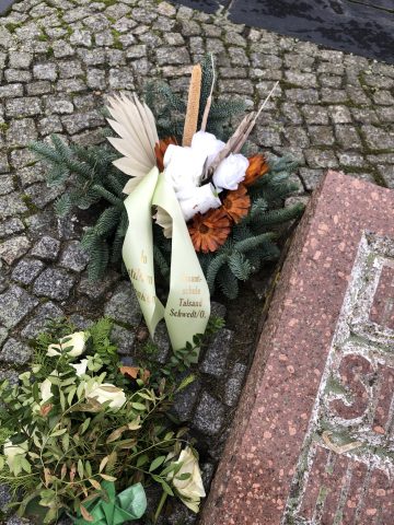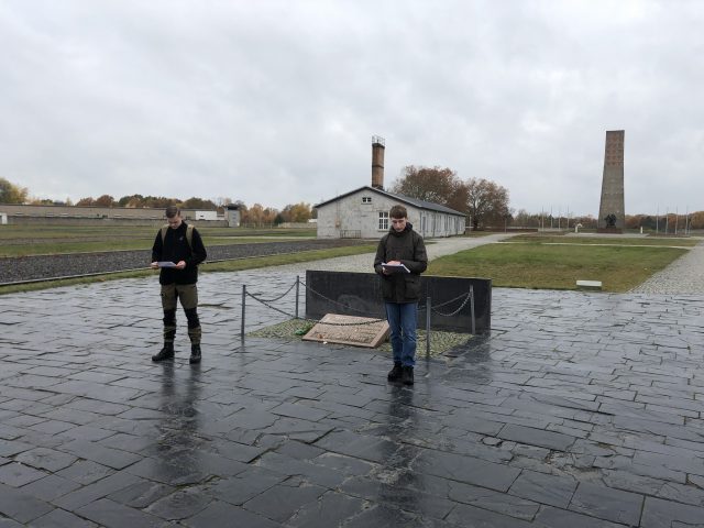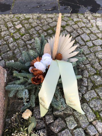 Das Verlesen von Zeitzeugenberichten und Gedenkworten sowie das Niederlegen von Kränzen übernahmen u. a. Hannes Grunz, Leon Schlosser, Jonas Wojtechovsky und Ellie Koppe, denen dafür ein besonderer Dank gebührt.