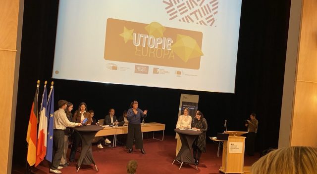 Das Büro für Hochschulkooperation und die Deutsch-Französische Hochschule haben in Zusammenarbeit mit dem Verbindungsbüro des Europäischen Parlaments in Deutschland und der Vertretung der Europäischen Kommission in Deutschland im Jahr 2025 zum sechsten Mal den Debattierwettbewerb „Utopie Europa“ organisiert. In dieser Ausgabe waren die Studierenden eingeladen, sich mit der folgenden Frage auseinanderzusetzen: „Teilhabe und Engagement: der Jugend in Europa eine Stimme geben“.