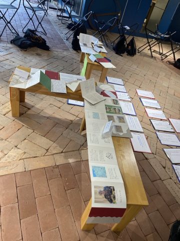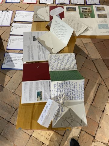 Jeder ging mit einer Idee für seine Aufgabe nach Hause: In den kommenden vierzehn Tagen soll im Bekanntenkreis nach Geschichten und Erinnerungen zum Zweiten Weltkrieg geforscht werden. Die Faltbücher dienen zum Festhalten dieser Erzählungen in Bildern, Fotos, Collagen, Zeichnungen, Berichten oder Zeitungsausschnitten. Ebenfalls kann sich mit den Begriffen „Flucht“ und „Vertreibung“ auseinandergesetzt werden.