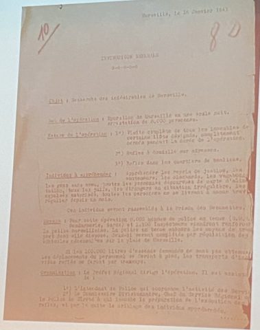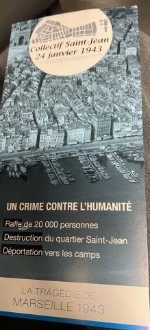 Die brutalen und mörderischen Aktionen, die auf Anweisung der französischen Regierung und der nationalsozialistischen Besatzungstruppen mit dem Ziel durchgeführt wurden, das alte Hafenviertel von Marseille zu „säubern“ stellt ein Verbrechen gegen die Menschlichkeit dar. Die Bewohner des Viertels Saint-Jean am Hafen von Marseille wurden deportierten und das Viertel anschließend gesprengt. Nur das Rathaus blieb verschont. In diesen engen Gassen lebte eine bescheidene und internationale Bevölkerung unterschiedlicher Religionen, einschließlich der Juden, und viele hofften, mit einem Schiff von dort Europa verlassen zu können. Die Zeitzeugen schilderten ihr bescheidenes, aber glückliches Leben in diesem Hafenviertel vor der Razzia. Claude Arovas, Überlebender der Shoah – seine Eltern fielen der Shoah zum Opfer -, Antoine Mignemi – Vorsitzender des „Collectif Saint-Jean 24 janvier 1943“ – und Suzanne Fritz berichteten von der Razzia, die sie als Kinder miterlebten.