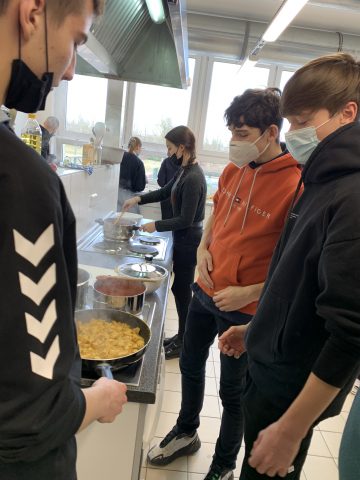 Montag, den 21. Februar 2022, hat der Englisch-Leistungskurs der zwölften Klasse von Frau Pohle-Hahn durch ein Projekt einen Blick in die britische Esskultur geworfen. Das Projekt erstreckte sich über einen Zeitraum von fast drei Stunden. In dieser Zeit hat sich der Kurs in fünf Gruppen aufgeteilt, in denen je einmal das Gericht „Chicken Tikka“ gekocht wurde. Hierbei handelt es sich um ein Currygericht mit gegrilltem mariniertem Hähnchenfleisch in einer würzigen Tomatensosse. Chicken Tikka entstand in der Nachkriegszeit in Grossbritannien, um indisches und englisches Essen miteinander zu verbinden.